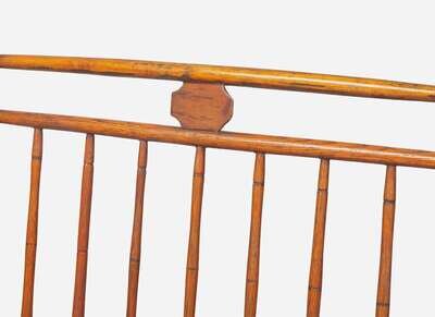 Comprised of bamboo-turned spindles and rails with three oblong canted corner medallions centered in each