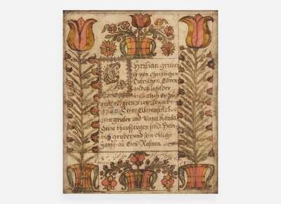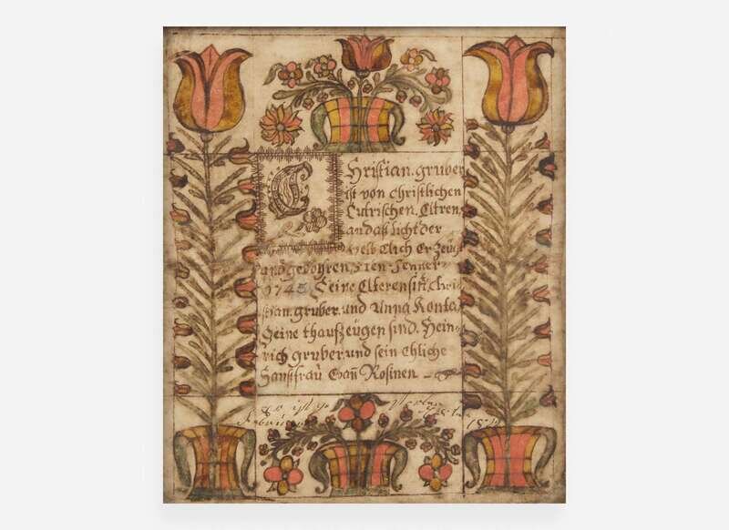 A Fraktur birth record for Christian Gruber, dated "1822"