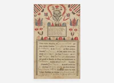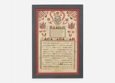Martin Brechall (c. 1757-1831), Fraktur: Birth Record for the Schmidt Family, dated "1807"