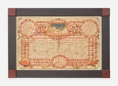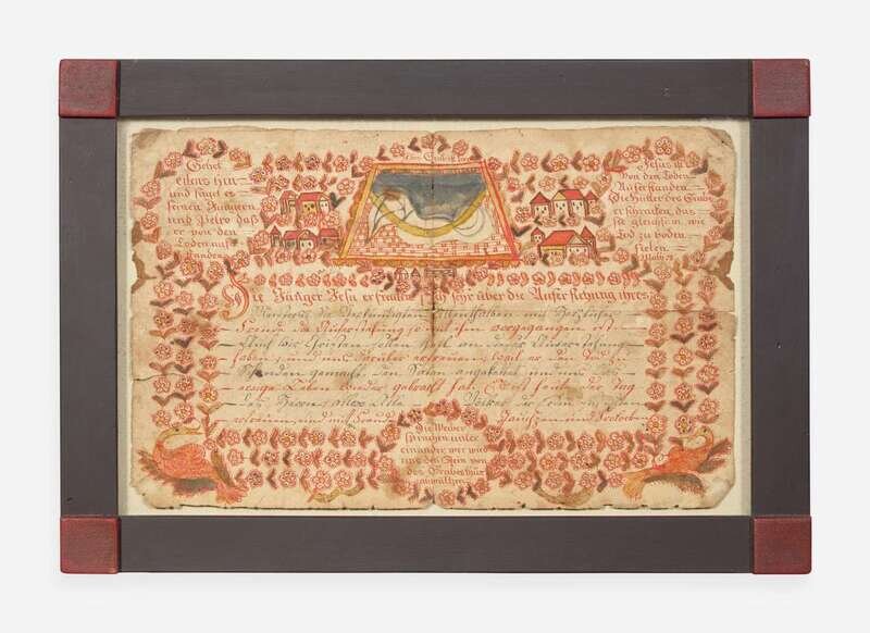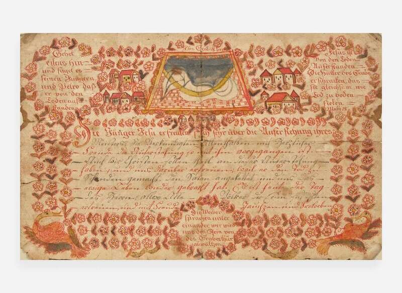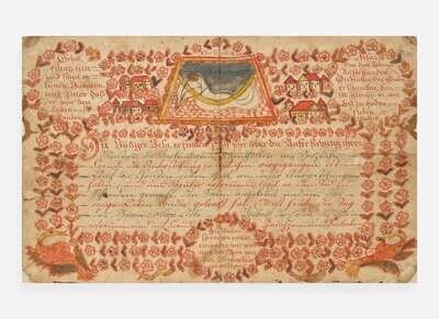 A Frakur birth record decorated with houses