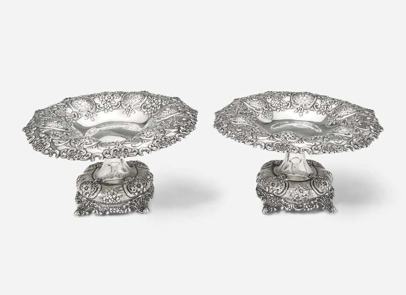 A pair of sterling silver repoussé tazzas, Tiffany & Co., New York, NY, 20th century