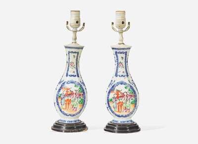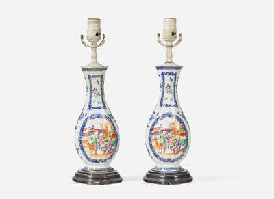 A pair of Chinese Export porcelain vases fitted as lamps, 18th century and later