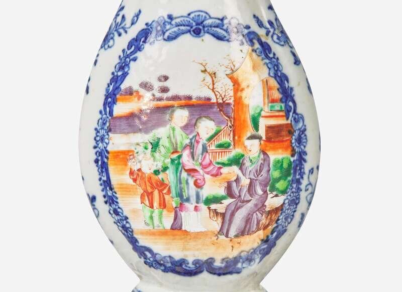 Each with conforming polychrome decoration, including reserves featuring figures in a landscape.