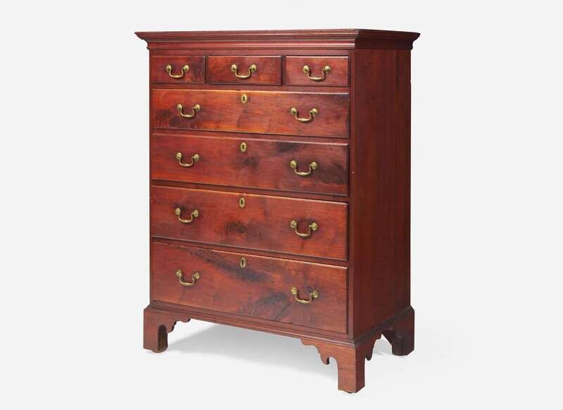 A Chippendale walnut tall chest of drawers, probably Pennsylvania, late 18th century