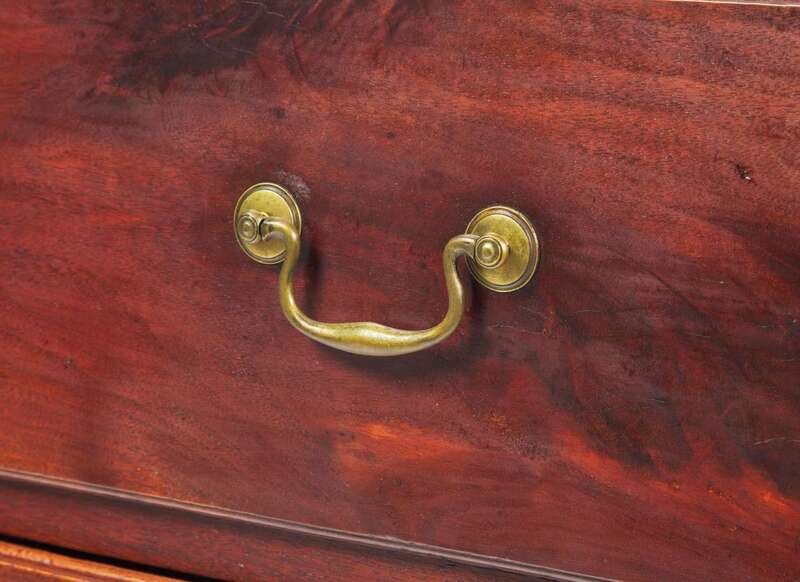 brass bail handles and escutcheons, molded base, on scrolled bracket feet.