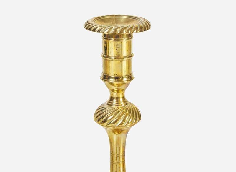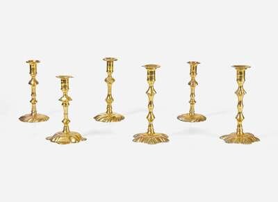 A group of six English brass candlesticks, 18th century