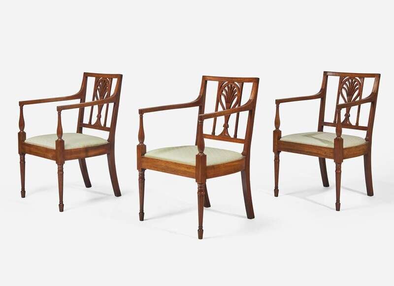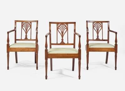 A group of three Federal mahogany racquet-back armchairs, Philadelphia, PA, circa 1790
