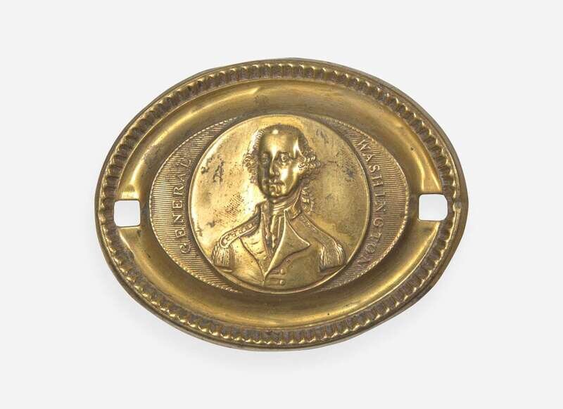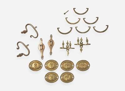 Comprising two pairs of fireplace jamb hooks, a set of six oval “General Washington” furniture plates and bail pulls.