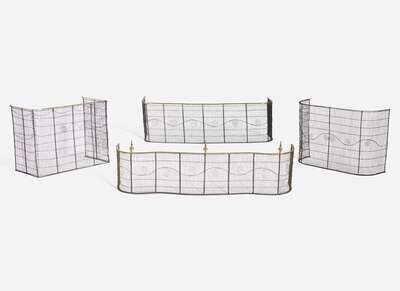 A group of four Federal brass and wirework fireplace screens and fenders, circa 1800