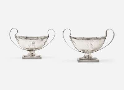 A pair of George III Sheffield plate sauce tureens, late 18th / early 19th century