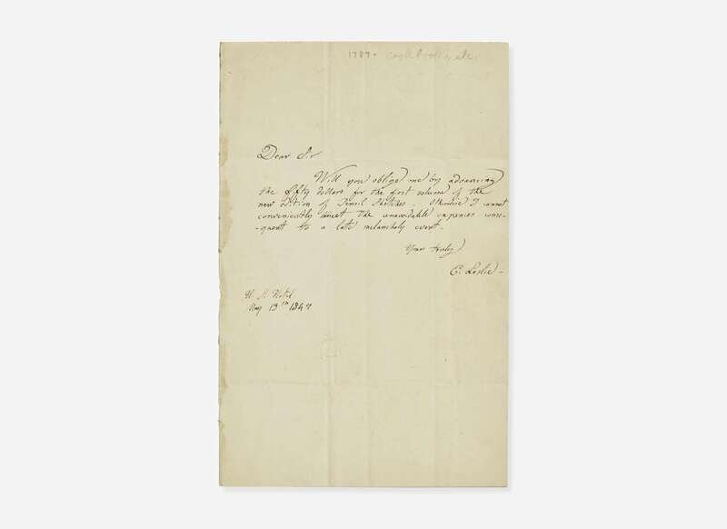 5. Autograph Letter, signed. One-page autograph letter by Eliza Leslie, dated May 13, 1849, to her publisher Abraham Hart, requesting an advance on payment owed to her.