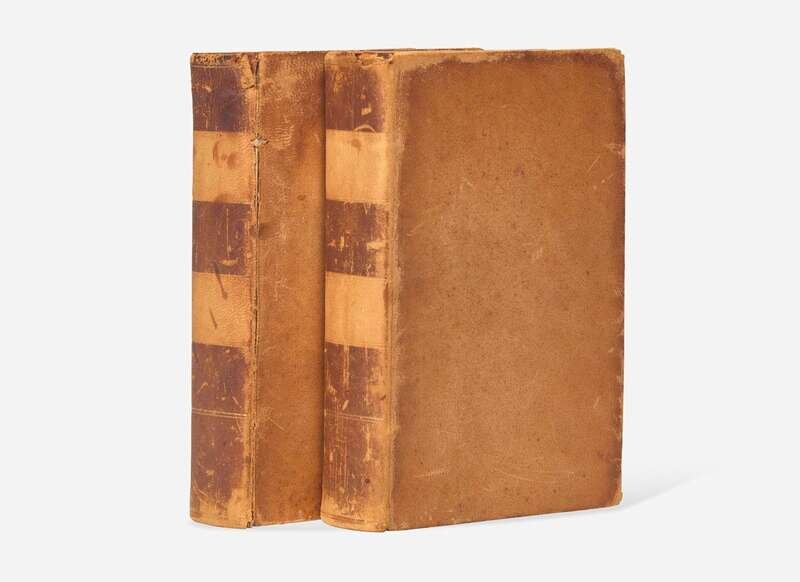 Philadelphia: Thomas Dobson, 1814. In two volumes. First American edition. 8vo. (iv), 159, (3), 162-296, (1); (vii), 312, (1) leaves, including half-titles and front and rear blanks, as well as scarce publisher's notice in volume one (not found in all copies); Van der Hooght's four leaf Preface bound in at front of second volume. Full contemporary speckled tan calf, rubbing to boards and extremities, front and rear joints of first volume just starting, light wear to head of spine in both volumes, spine labels sometime lost; speckled brown edges; foxing to endpapers and blanks in each volume; very light foxing and toning to some leaves and front and rear of each volume. Goldman, Hebrew Printing in America 4; Wright, Early Bibles of America, 123-24; Rosenbach, An American Jewish Bibliography 171; O'Callaghan 8; Darlow and Moule 5168a; Shaw & Shoemaker 30857
