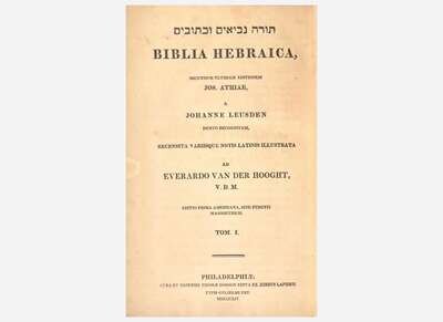 Biblia Hebraica, Secundum Ultimam Editionem Jos. Athiae, a Johanne Leusden, Denuo Recognitam, Recensita Variisque Notis Latinis Illustrata ab Everardo Van Der Hooght, V.D.M. Editio Prima Americana, Sine Punctis Masorethicis