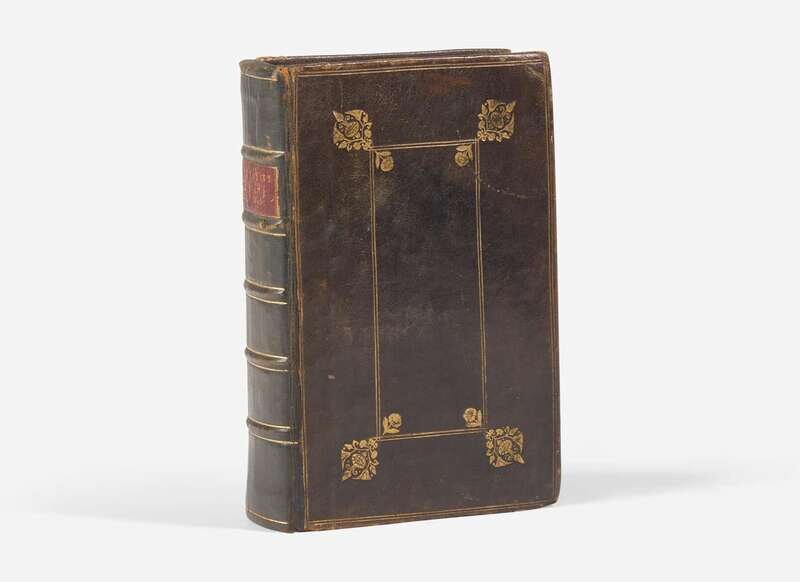 London: Printed for Jacob Tonson, 1684. Two parts in one volume (with: Sylvae: or, the Second Part of Poetical Miscellanies; Tonson, 1685). First edition of each part. 8vo. (viii), 328; (ii), 92; (xlii), 168, 353-494 pp. (erratic pagination, as issued); lacking M2 and χ1 in part one and Ii8 in part two. Illustrated with frontispiece of English Royal arms, possibly inserted at front. Full black morocco, red morocco spine label, stamped in gilt, sometime rebacked to style, boards and extremities rubbed, spine slightly dry; all edges trimmed; book-plate of English bibliographer and bookseller Graham Pollard on front paste-down, book-plate of Ian Jack below same; old ownership signature on verso of Royal Arms; soiling and wear to title-page; light to moderate foxing and soiling to text. Hammond, The Printing of the Dryden-Tonson Miscellany and Sylvae (1990)