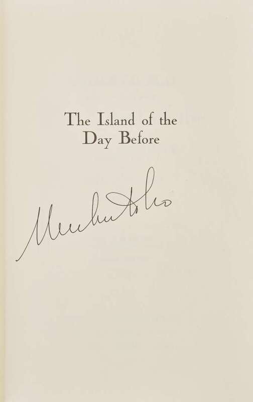 3. The Island of the Day Before. First American trade edition, (1995). Additionally signed by translator William Weaver. Contursi A037d