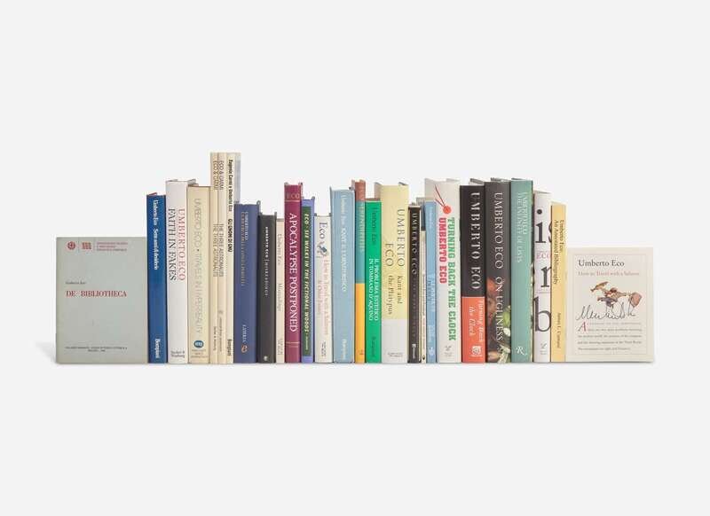 1. De Bibliotheca. Milan, 1981. First edition. Inscribed by Eco on title-page to his bibliographer James Contursi. Publisher's stiff wrappers. Contursi A022