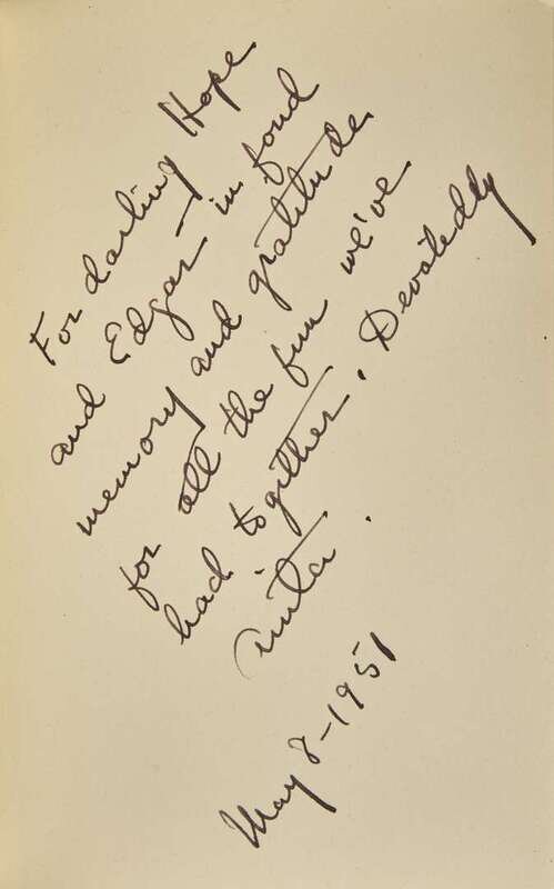 Hope Montgomery Scott (1904-95) was a socialite and philanthropist who is remembered as the inspiration for the character Tracy Lord in Philip Barry's 1939 comic play The Philadelphia Story (Hope would be depicted by Katharine Hepburn in the film adaptation of the play in 1940). Hope and her husband, Edgar--an investment banker--were lifelong friends with American playwright, screenwriter and novelist, Anita Loos (1889-1981). Hope most likely became acquainted with Anita through her husband, as he served as Anita's financial advisor.