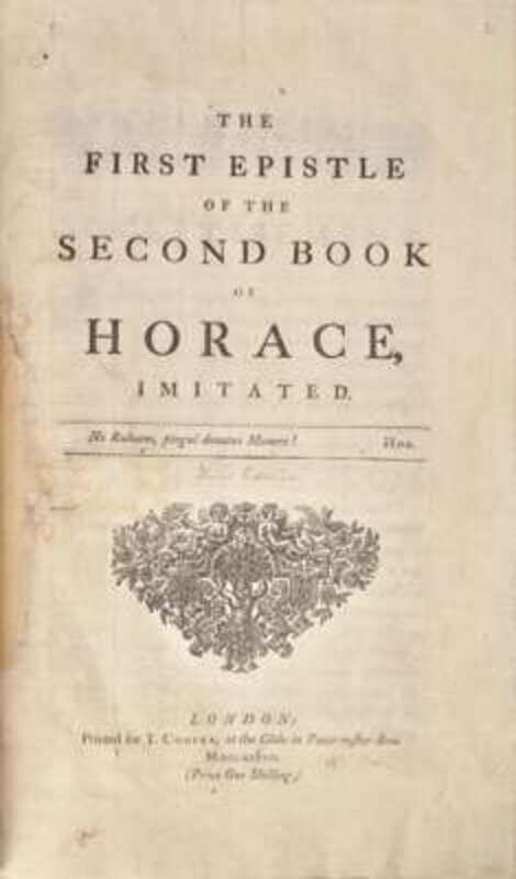 London: Printed for T. Cooper, 1737. Two works in one volume (with: The Second Epistle of the Second Book of Horace, Imitated by Mr. Pope). First edition. Folio. iv, 23, (1); 19 pp. Modern quarter brown calf over paste paper-covered boards, red morocco spine label, stamped in gilt; all edges trimmed.