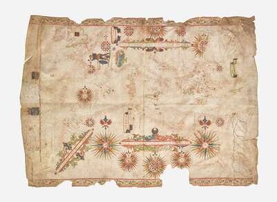 A rare portolan chart of the Mediterranean by Joan Oliva, one of only four extant works from his short chart making period in Marseille, and the only one from this period still in private hands.