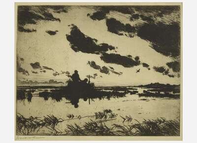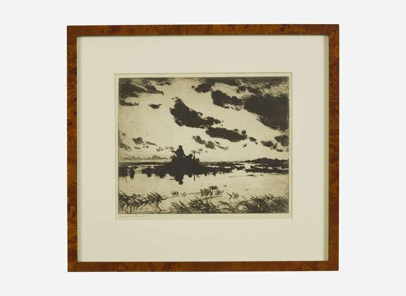 1921. Etching, signed by Benson bottom left. From an edition of 150. 11 1/2 x 13 3/4 in. (292 x 349 mm). In mat, and in frame, 14 1/8 x 15 5/8 in. (359 x 397 mm). From the sporting library of American adventurer, naturalist, and sportsman, Brooke Dolan II. Paff 204