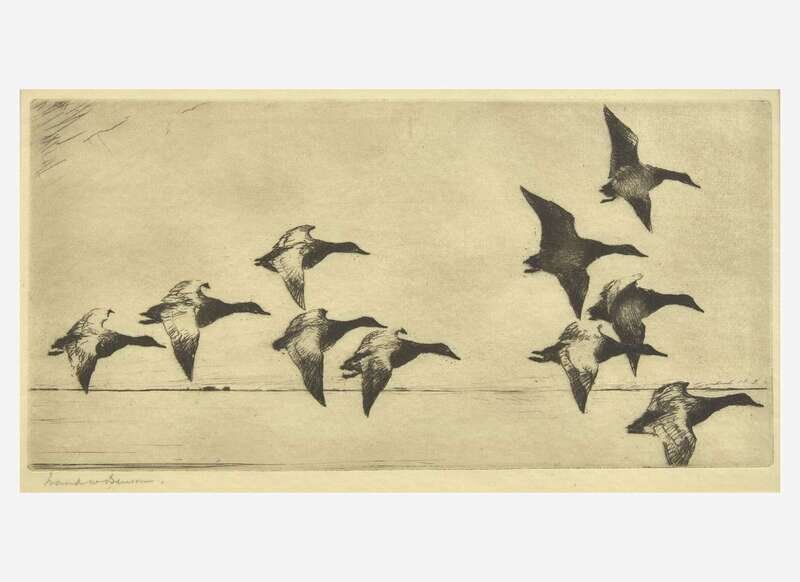 1926. Etching, signed by Benson in pencil bottom left. From an edition of 150. 6 1/2 x 12 1/4 in. (165 x 311 mm) (sight). In mat and unexamined out of frame, 13 1/4 x 19 1/8 in. (336 x 486 mm). Paff 261