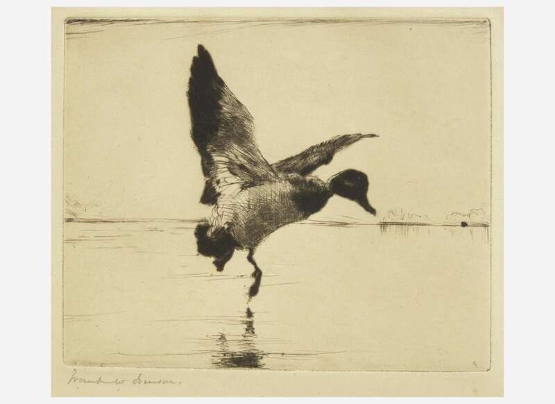 1920. Drypoint, signed by Benson bottom left. From an edition of 56. 5 3/4 x 8 5/8 in. (146 x 219 mm) (sight). Dampstaining along edges. In mat and unexamined out of frame, 10 7/8 x 13 3/8 in. (276 x 340 mm). Paff 197