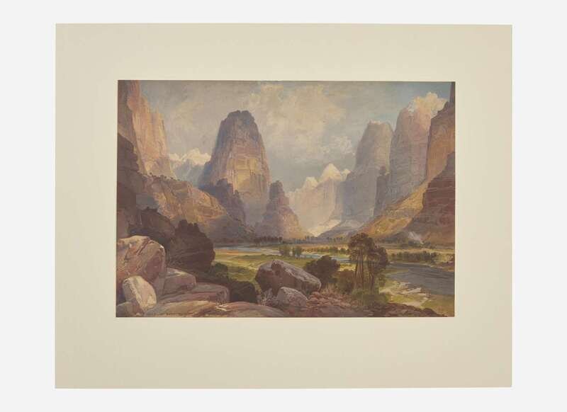 (Boston): L. Prang & Co., 1876. Chromolithograph, by Louis Prang after the painting by Thomas Moran; signed in stone by Moran with his monograph lower right; Prang imprint and title in stone along bottom edge. 9 3/4 x 13 15/16 in. (248 x 354 mm). Mounted along top edge to modern wove paper, 15 1/8 x 18 7/8 in. (384 x 479 mm). In mat.