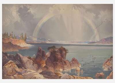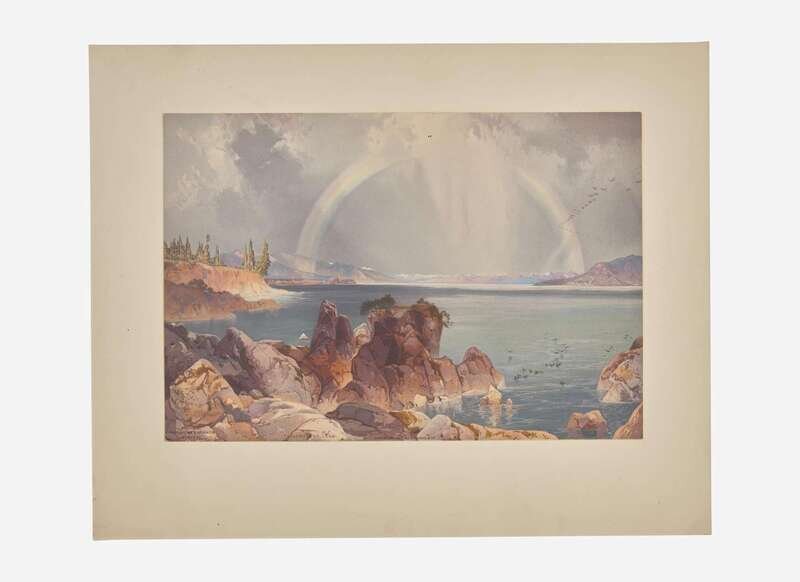 Boston: L. Prang & Co., 1875. Chromolithograph, by Louis Prang after the painting by Thomas Moran; signed in stone by Moran with his monograph lower left; Prang imprint and title in stone along bottom edge. 9 7/8 x 14 3/8 in. (251 x 365 mm). Very small surface stain in top center edge. Mounted at top edge to likely later heavy card, 14 13/16 x 18 5/8 in. (376 x 473 mm). In mat.
