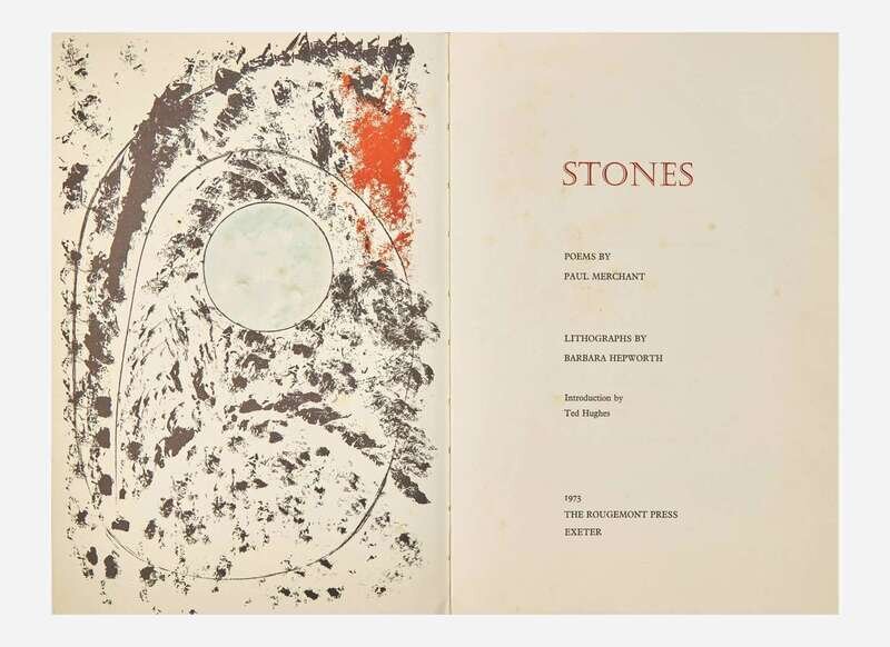 Exeter: The Rougemont Press, 1973. First and limited edition, #45/75 copies signed the author and aritst, Paul Merchant and Barbara Hepworth (from a total edition of 150). 4to. Introduction by Ted Hughes. Text printed in red and in black. Illustrated with two color lithographs by Hepworth. Publisher's yellow ochre cloth, stamped in gilt, light soiling to edges and spine; all edges trimmed; scattered light foxing to text and plates.