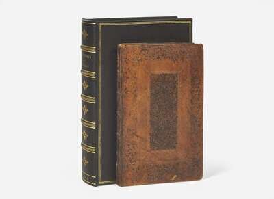 London: Printed for, and Sold by A. Baldwin, 1698. Two parts in one volume. First edition. Small 8vo. (viii), 55, (1); (xii), 34 pp. From the library of the Earls of Macclesfield, Shirburn Castle, and with their armorial book-plate (dated 1860) on front paste-down and blindstamp on map and following three leaves at front. Illustrated with an engraved folding frontispiece map of Pennsylvania and West New Jersey, by Philip Lea. Contemporary speckled brown paneled sheep, stamped in blind, old paper labels on spine with manuscript title, small scattered wear to spine, expert repairs to same; red speckled edges; foxing and offsetting to text; in full black morocco solander box and chemise. Howes T-167 ("dd"); Church 778; Felcone 264; Sabin 95395; Burden 728; Vail 280; Bradford 5387; Pilling 3847; Streeter 946; Myers, Narratives of Early Pennsylvania, West New Jersey and Delaware, 1630-1707 (Vol. 12, pp. 311-312); Smith, Friends' Books, Vol. II, p. 733