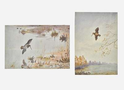 No date, ca. 1960-70s. Watercolor and gauche on paper, signed by Rickman bottom right. Comprising: Woodcock, Leaving Cover and A Favourite Feeding Ground-Snipe. Each measuring 11 x 7 1/2 in. (279 x 190 mm). Each with tape remnants and residue on verso, manuscript notation on same. Each in mat. From the sporting library of American adventurer, naturalist, and sportsman, Brooke Dolan II.