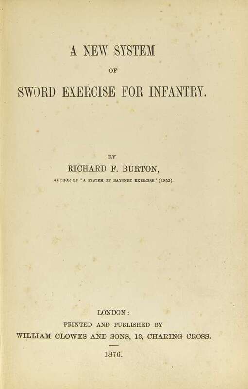 A handsome copy of Sir Richard F. Burton's rare treatise on swordsmanship, a work that “aspires to be the first Treatise in which the broadsword is scientifically taken in hand.” (Introductory Remarks, p. 20)