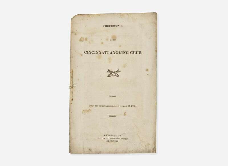 Cincinnati: Printed at the Chronicle Office, 1831. First edition. 8vo. 8 pp. From the sporting library of American adventurer, naturalist, and sportsman, Brooke Dolan II. Illustrated with an engraved fish device on title-page and in-text wood engraved fish on p. (3). Stab-sewn gathering, original thread intact; all edges trimmed; foxing and pale dampstaining on title-page; dampstaining in top edge of text; foxing to text; in blue cloth box. Sabin 65827; Henderson, p. 85; Goodspeed, pp. 108-110; OCLC 20400858