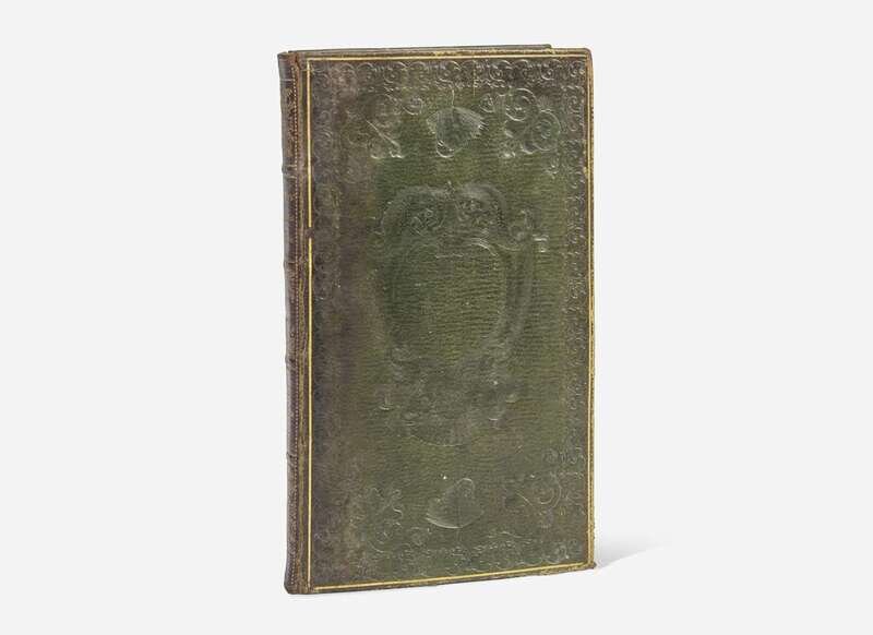 London: Printed by T. James for Tho. Helder, 1682. First edition (with break in type of “E” on fourth line of title-page and with hook on p. 37 pointing to the right). 12mo. (xx), 78, (2) pp. From the fishing library of Alfred Denison, and the sporting library of American adventurer, naturalist, and sportsman, Brooke Dolan II. Title ruled in red ink. Illustrated with two in-text woodcuts. Full green straight grain morocco, stamped in blind on front and rear boards with a piscatorial cartouche a la title-page of Walton's Compleat Angler, ruled and lettered in gilt, boards and spine unevenly browned, extremities rubbed, scattered soiling, boards warped; all edges gilt; possibly by or in the style of Thomas Gosden; brown endpapers; Denison's gilt morocco book-plate on front paste-down, large 19th-century sporting book book-plate below same, with “G.T.” or “T.G.” monogram, by Scott; old collator's inscription on front blank, dated April 3, 1838; gutter starting at title-page; soiling to title-page; spotting and mild darkening to text; dampstaining in bottom edge of most text leaves; leaf G loose. Westwood & Satchell, p. 156