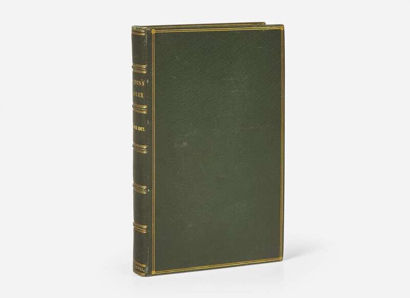 London: Printed for R. Marriot, 1668. The fourth Edition, much corrected and enlarged. 16mo. (xvi), 255, (17) pp. From the sporting library of American adventurer, naturalist, and sportsman, Brooke Dolan II, in his custom cloth box. Illustrated with engraved title-page with piscatorial cartouche, 10 in-text engravings of fish, and two-pages of sheet music for “The Anglers Song” by Henry Lawes. Full green morocco, stamped in gilt, light rubbing and faint scratching to boards; all edges gilt; title-page slightly darkened; spotting to text; small repairs in top edge, pp. 149/150, 163-166, 181/182, 213/214, and S2-4; R8 laid down; in blue cloth box, stamped in gilt “Brooke Dolan 1940”. Coigney 5; Pforzheimer 1051; Horne 5; Westwood & Satchel, p. 219