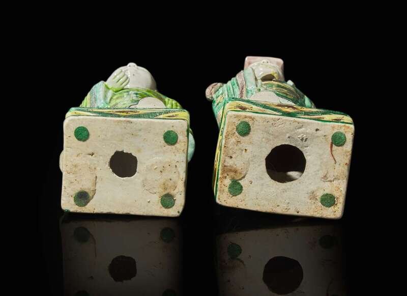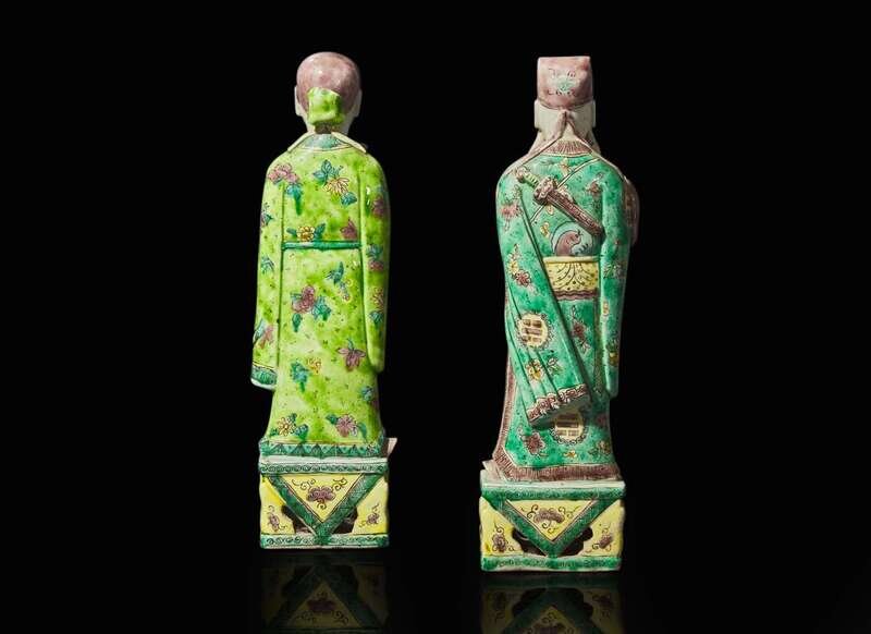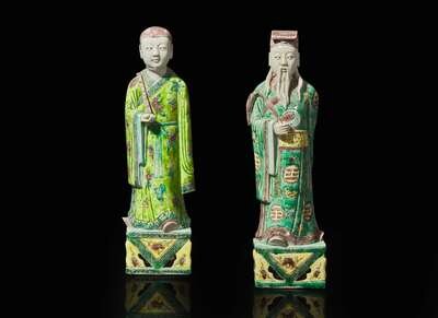 A pair of Chinese famille verte-decorated porcelain Daoist immortals
