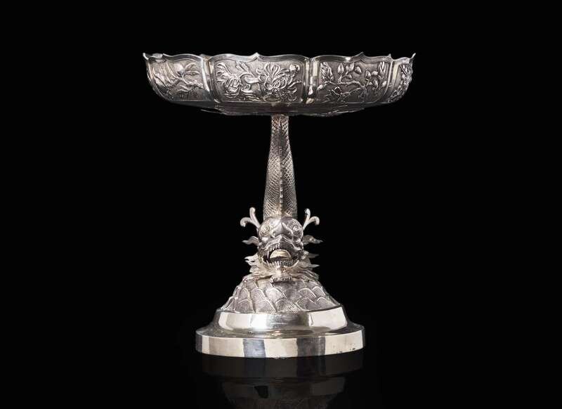 A Chinese export silver "Dragon-fish" tazza, circa 1900-1910