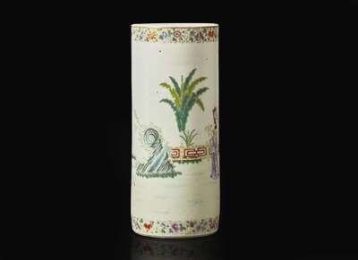 A Chinese famille rose-decorated porcelain "Boys" hat stand 粉彩帽筒