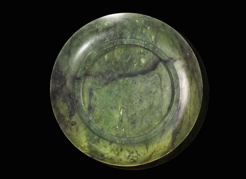 A Chinese spinach green jade circular dish, 18th / 19th century 翠玉小盤 十八或十九世紀