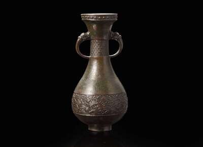 A Chinese patinated bronze vase, probably Yuan dynasty 銅加漆獸耳瓶 或元