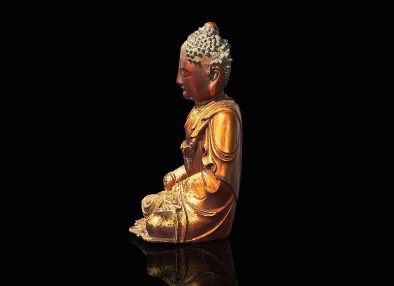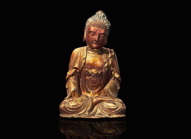 A Chinese gilt lacquered figure of Buddha, Ming to Qing dynasty 木漆金佛造像一座 明或清
