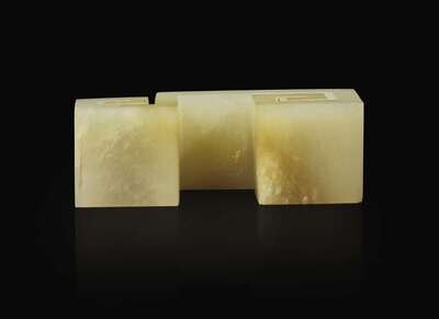 A Chinese carved celadon jade "Scroll" brush rest, Qing dynasty 青玉筆架一件 清