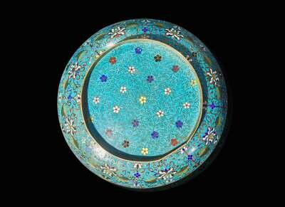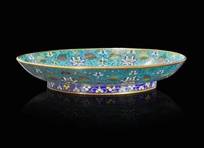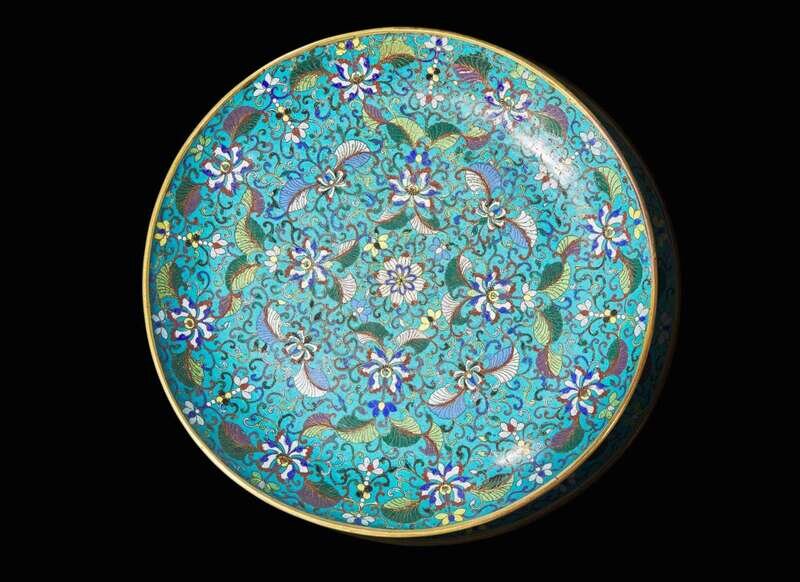 A Chinese cloisonne large circular dish, 18th/19th century 銅胎掐絲琺瑯大盤 十八或十九世紀