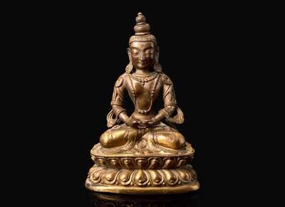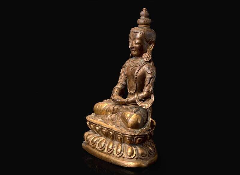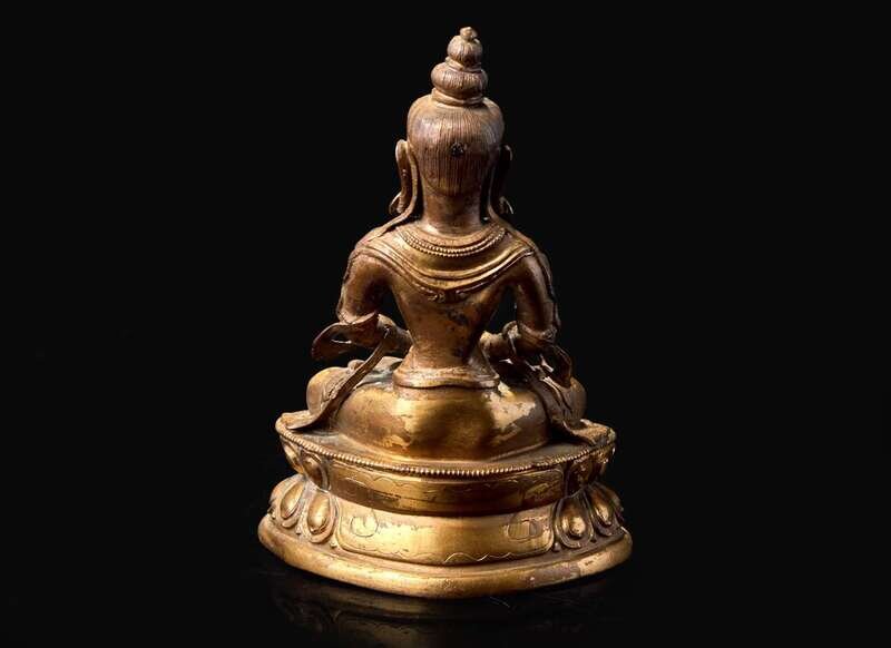 Modelled in seated pose on a sealed double-lotus base.