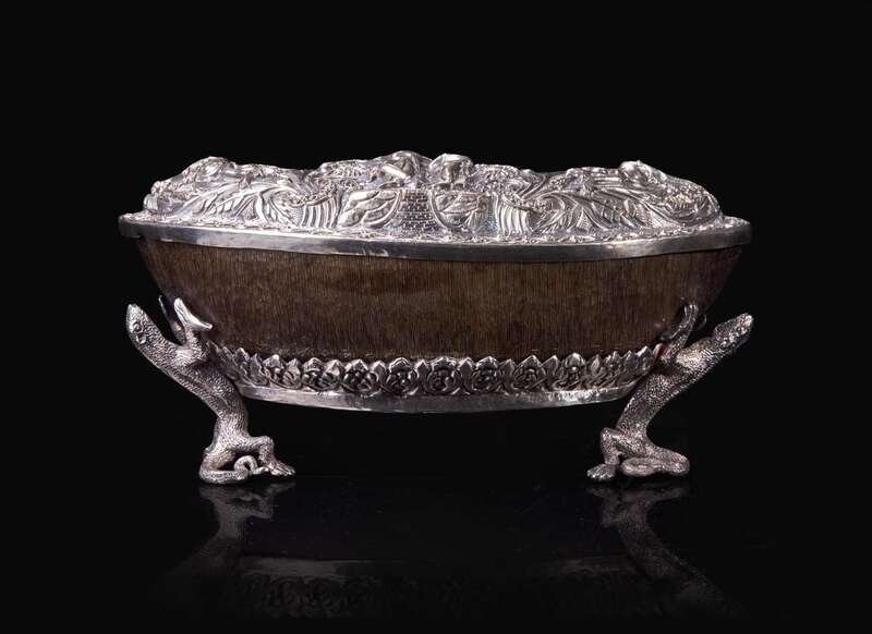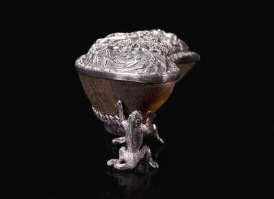 An unusual Indian silver-mounted buffalo horn box 印度嵌銀牛角盒