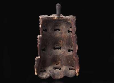 A Nepalese carved and polychromed wood mask 尼泊爾加彩木面具