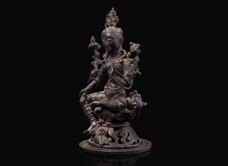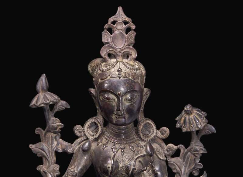 A Nepalese patinated bronze figure of Tara, possibly 19th century 銅加漆尼泊爾度母造像 可能為十九世紀