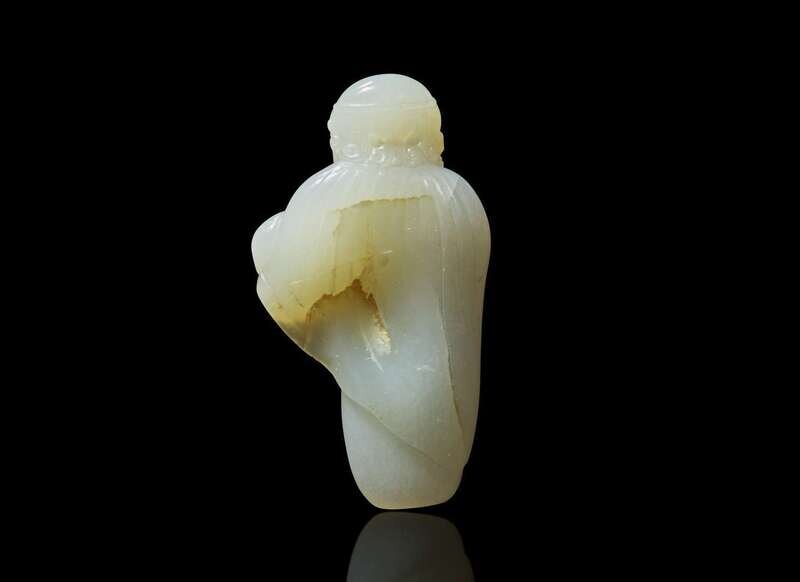 The figure with curly hair and beard, a long cloak, bearing a bundle, the stone with slight russet inclusions and natural fissures