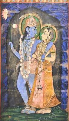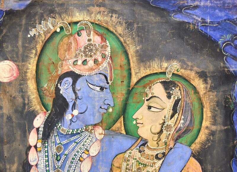 An Indian Pichwai depicting Krishna and Radha, 19th century or earlier 奎師那與拉達帛畫一幅 十九世紀或更早