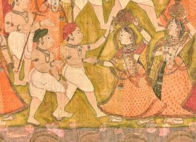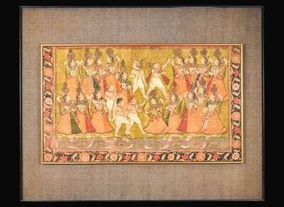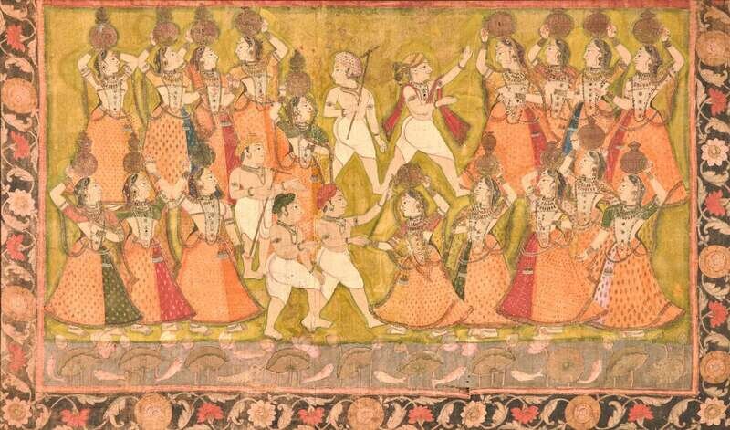 An Indian Pichwai depicting Gopis and Cowherds, 19th century or earlier, Gopis與牛群 十九世紀或更早